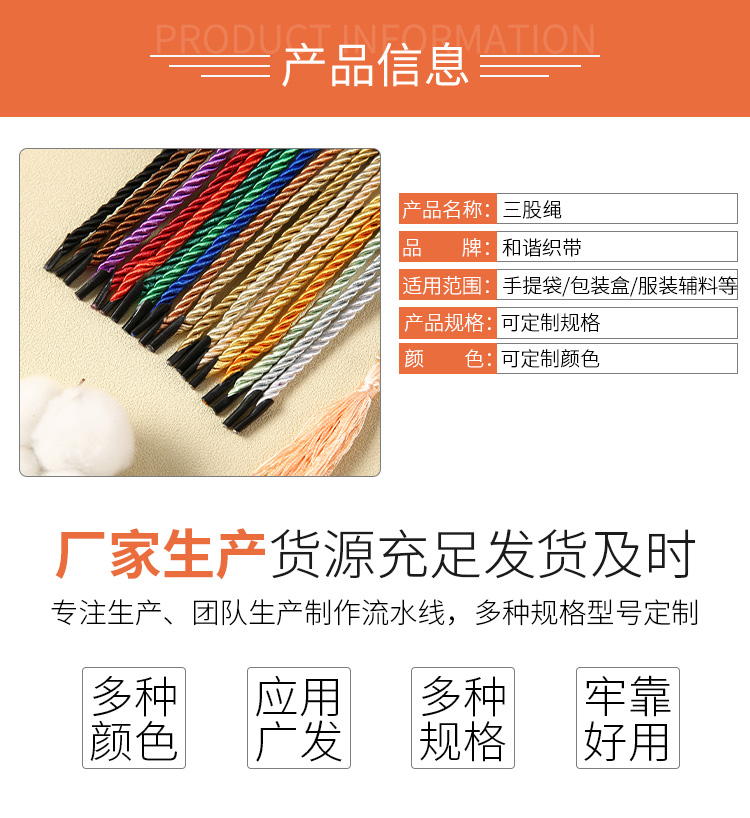 和諧織帶主營三股繩、三股手提繩、手提繩